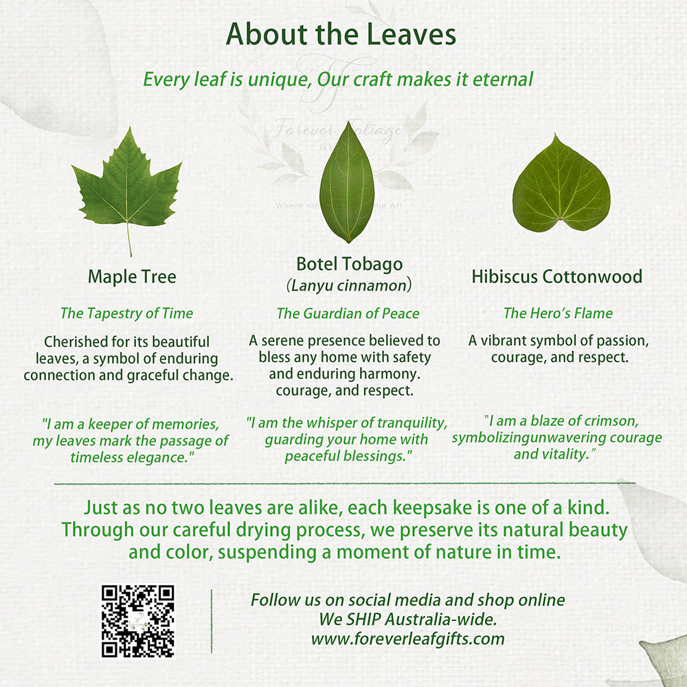 🌿Symbolizing growth and harmony, we sustainably sourced leaves without harming nature, preserving their raw veins and textures.
